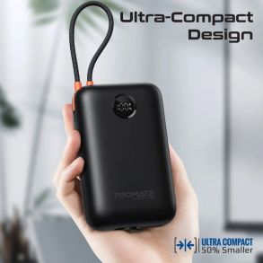 Charge up the day with Promate’s PowerPod-30, 30000mAh power bank, featuring a built-in USB-C cable and Lightning cable for versatile charging. With an ultra-fast PD30W USB-C In/Out port and 22.5W Qualcomm Quick Charging 3.0, it ensures rapid power delivery for up to 4 devices at a time. Designed with over-charging and over-heating protection, this ultra-compact powerhouse guarantees safe and reliable performance on the go.