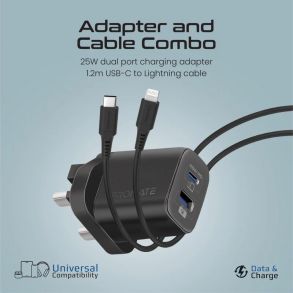 ChargeKit-25PDi combines a 25W dual port charging adapter and a 1.2m USB-C to Lightning cable, which is the ideal charging solution for your latest iPhone. The adapter features a USB-C Power Delivery and a QC 3.0 USB-A port that is designed to deliver optimum speed charging through the dual output ports. Its universal adaptability ensures this is the only charger you need for any smartphone or tablet device. The high tensile strength silicon cable makes for the ultimate solution for your charging needs. Silicone shielding provides superior durability and flexibility. This cable is tested to last 50k+ bends and is designed to handle maximum stress and strain.