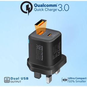 · PowerPort-25CC is your all-in-one charging solution, featuring a 25W dual port adapter and a 1.2m USB-C cable. With a 25W Power Delivery port, enjoy faster charging speeds for your USB-C-compatible devices.