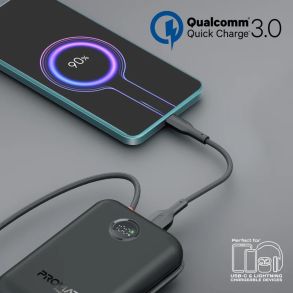 Charge up the day with Promate’s PowerPod-30, 30000mAh power bank, featuring a built-in USB-C cable and Lightning cable for versatile charging. With an ultra-fast PD30W USB-C In/Out port and 22.5W Qualcomm Quick Charging 3.0, it ensures rapid power delivery for up to 4 devices at a time. Designed with over-charging and over-heating protection, this ultra-compact powerhouse guarantees safe and reliable performance on the go.