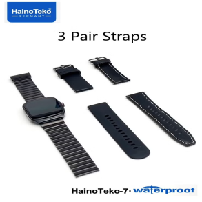 The HainoTeko-7 AMOLED Waterproof Smartwatch combines cutting-edge technology with a sleek design to redefine modern wearables. Featuring an AMOLED curved glass display, this smartwatch offers vibrant visuals and unmatched durability. Designed to support an active lifestyle, it includes waterproofing for depths of up to 1 meter for 30 minutes (not suitable for sea water), making it perfect for daily activities or light water exposure. With a comprehensive suite of features, from health tracking (heart rate, sleep, and blood oxygen) to workout metrics, the HainoTeko-7 keeps you informed and motivated. Stay connected with call, message, and app notifications, alongside voice assistant integration. Manage your day effortlessly with tools like a stopwatch, timer, calendar, calculator, and weather updates. Whether you're on a fitness journey, enjoying your music, or seeking relaxation through breathing training, this smartwatch adapts to your needs. Available with three interchangeable straps, the HainoTeko-7 offers both versatility and style, making it the perfect accessory for work, workouts, or casual outings.