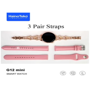 The HainoTeko G12mini Smart Watch is a stylish and compact smartwatch designed for both fashion and functionality. It comes with 3 different straps—stainless steel, leather, and silicone—allowing for customization based on the user's style or activity. The display features an AMOLED screen that enhances visuals with vivid colors and clarity. The watch offers essential smart features like calling, fitness tracking, and more, making it suitable for everyday use.