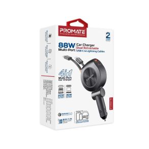 The Promate DriveGear-R2 is a versatile in-car charging solution designed to power multiple devices simultaneously. Featuring two built-in retractable cables and additional USB ports, it delivers fast, reliable, and safe charging for all your on-the-go needs.