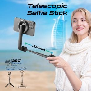 MagStick is your versatile photography companion, featuring a telescopic design for flexible shot capture and MagSafe mounting for easy iPhone attachment. With a foldable structure and a detachable remote control, it transforms into a tripod stand and offers seamless wireless operation. The impressive 10m range adds versatility, and its durable build ensures reliability. Elevate your photography experience with MagStick's modern design and advanced features.