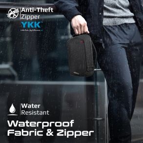 Elevate your organization game with Promate's UrbanPouch, the ultimate, versatile accessory pouch for your daily tech essentials. Boasting multiple compartments and pockets, this pouch ensures every item has its place, while the dual carry handles offer convenient portability. A sleek leather card storage slot adds a touch of elegance, complimented by a waterproof zipper and water-resistant fabric that protect your essentials from the elements. Crafted from lightweight yet durable nylon, UrbanPouch features a stylish diamond design, making it the perfect blend of practicality and sophistication for the modern lifestyle.